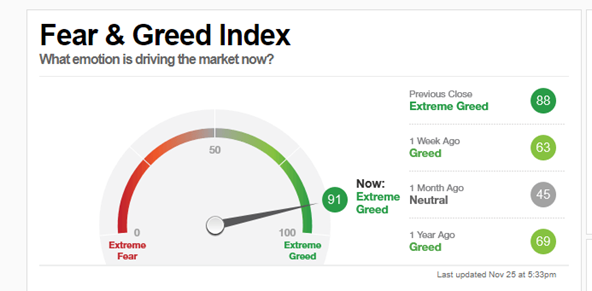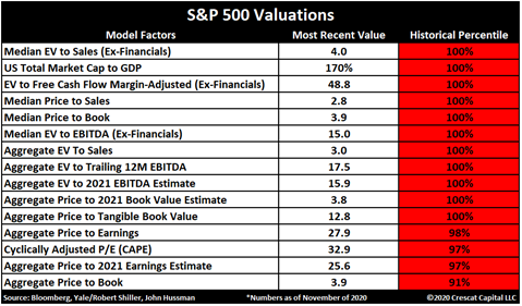 As we got caught up in the exuberance of a Covid vaccine (please help me get these kids out of the house!!!), these following stock market metrics have given us cause for pause.