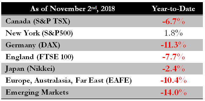 February 2009, May 2010, August 2011, January 2016 – these are all months in which the S&P500 lost as much ground as it did in October 2018. All of these months were quickly forgotten as side-notes to the longest-running bull-market in history. So why are investors so shaken from the recent stock market movements? In this month’s Innova Market Insights, we discuss the recent shake-up on the world markets and some of the contributing factors to this year’s abysmal stock market performance.